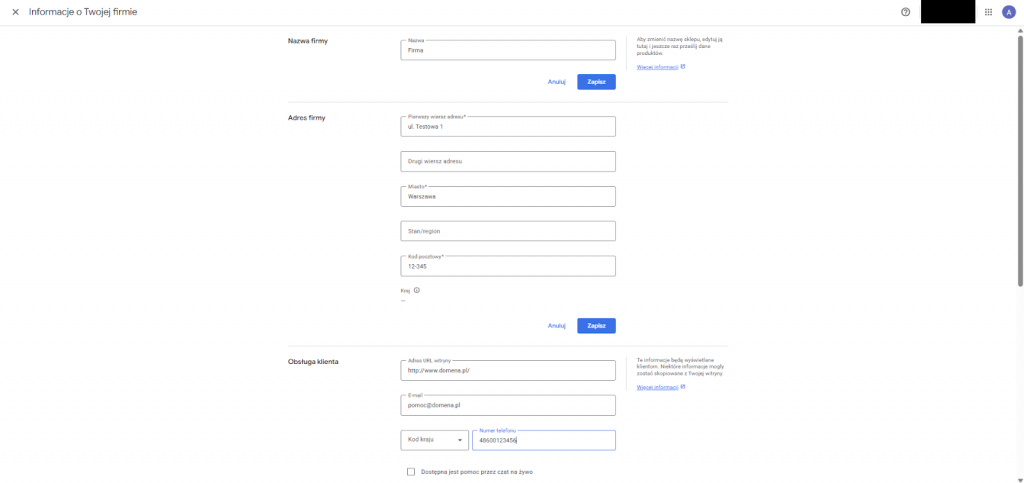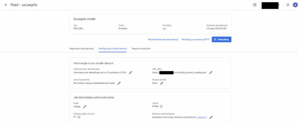 Konto to służy do przesyłania i zarządzania feedem produktowym. Wymagane jest uzupełnienie danych o firmie, domenie oraz weryfikacja witryny sklepu.