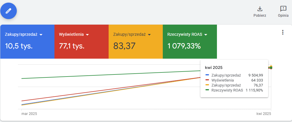 Optymalizowanie kampanii wymaga ciągłego monitorowania danych – zarówno w Google Ads, jak i w Google Analytics. Należy śledzić wskaźniki takie jak CTR, koszt konwersji, ROAS, a także udział w wyświetleniach czy kliknięciach. Na ich podstawie można natomiast podejmować decyzje o zmianie stawek, wykluczaniu nieefektywnych produktów czy modyfikacji treści w feedzie. Regularne testowanie różnych wariantów (np. tytułów, etykiet, segmentacji) to jedyna droga do stopniowej poprawy efektywności.