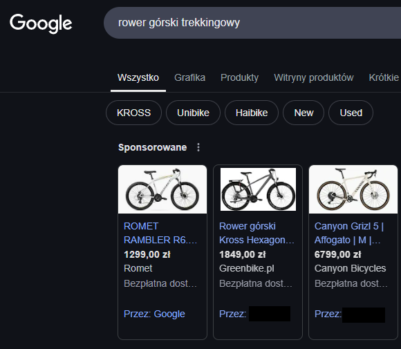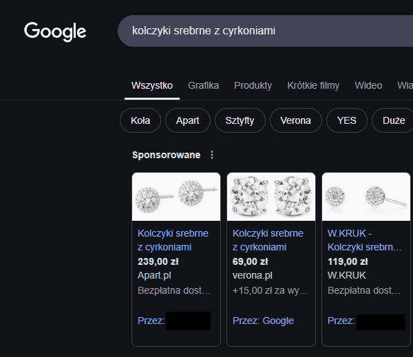 - Wysoka jakość ekspozycji w wyszukiwarce Google – produkty prezentowane są bezpośrednio w wynikach wyszukiwania, z wyraźnym zdjęciem, ceną i nazwą sprzedawcy, co zwiększa zaufanie i szansę na kliknięcie.