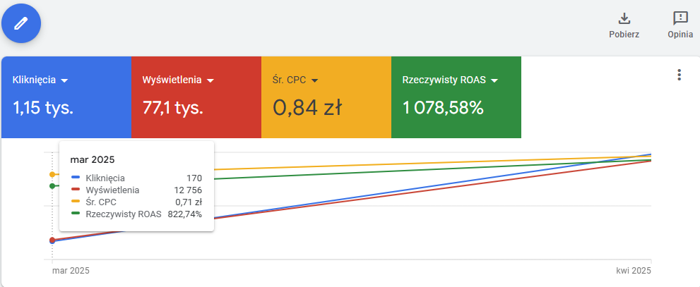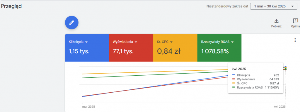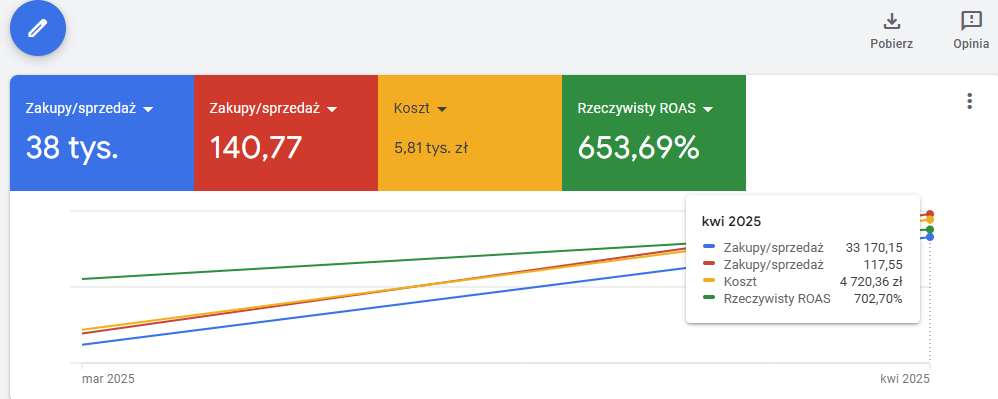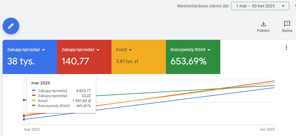 Wzrost ROAS w porównaniu marzec/kwiecień 2025