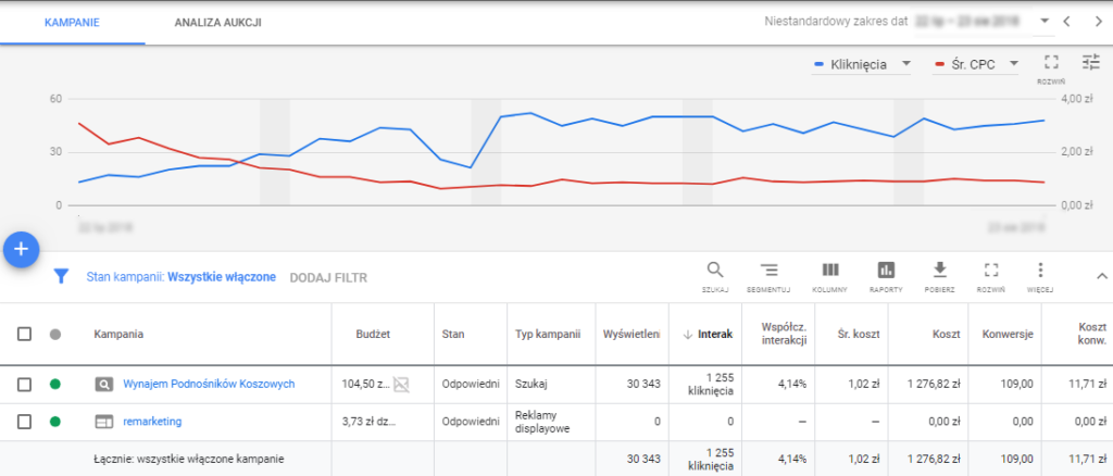 Dział techniczny na początku przygotował audyt kampanii w Google Ads, który omówiliśmy z naszym partnerem. Strategia, którą obraliśmy to maksymalizacja liczby kliknięć z użyciem algorytmów sztucznej inteligencji oraz wprowadzenie zmian przy uwzględnieniu wniosków z przeprowadzonej analizy.